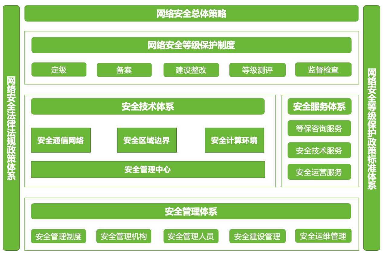 根據(jù)《網(wǎng)絡(luò)安全法》規(guī)定“國家實行網(wǎng)絡(luò)安全等級保護制度”,等級保護作為我國在網(wǎng)絡(luò)安全方面的基本制度將長期實行下去。同時,為了解決新技術(shù)、新應(yīng)用的安全問題,等級保護2.0系列標(biāo)準(zhǔn)進行了修訂并正式對外發(fā)布。國家相關(guān)法律、法規(guī)和標(biāo)準(zhǔn)的發(fā)布,讓新時期的等級保護建設(shè)跨入快車道。